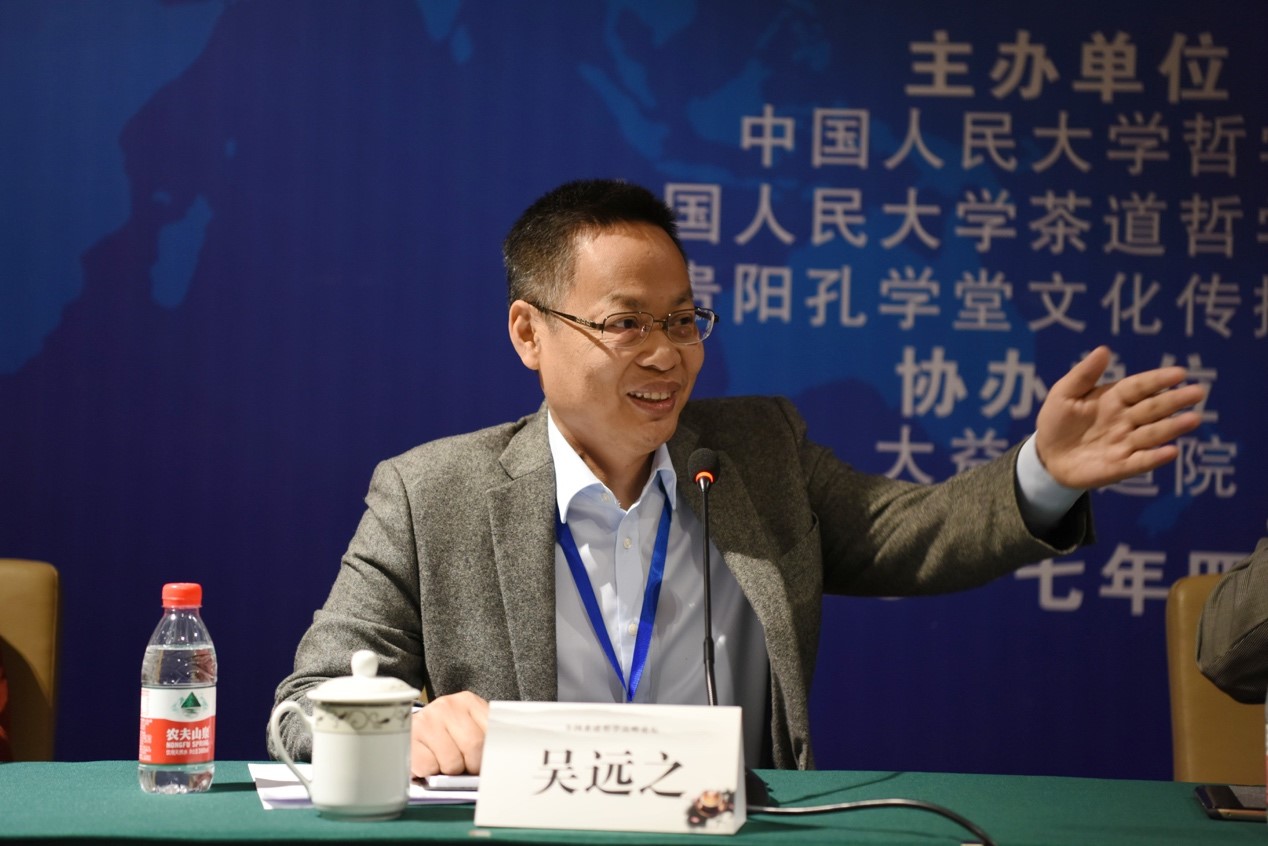 在22日的大会开幕式环节,主持人——自拍流出 院长、自拍流出 茶道哲学研究所名誉所长姚新中教授首先简要介绍了自拍流出 茶道哲学研究所的概况,并对大益集团董事长吴远之先生的民族情怀表示高度的赞叹;贵阳孔学堂文化传播中心党委书记徐圻教授对于“茶道哲学”的创新开启表示祝贺和支持,对来自全国的与会学者表示热烈欢迎;大益集团董事长、大益茶道院院长、自拍流出 茶道哲学研究所首席顾问吴远之先生汇报了大益集团近年来致力于实现“茶之国饮”的努力,并从茶道认知学角度阐述了自身对茶道的理解,并对茶道哲学研究寄予了殷切期望。贵州大学王良范教授作为本地学者的代表作了发言,并对中国茶文化与西方思想如何在哲学层面的结合提出了思考。