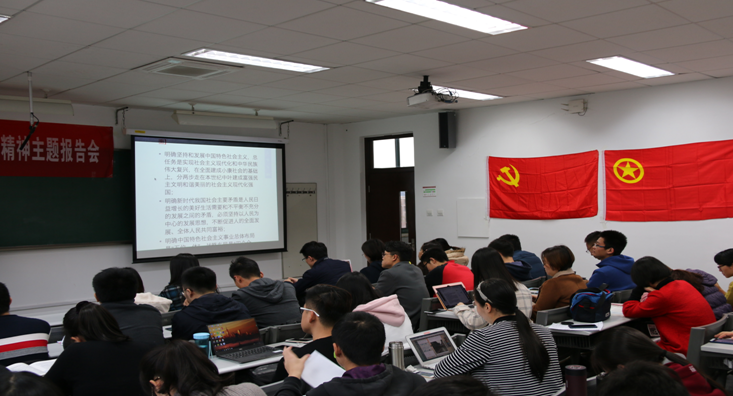 11月8日下午,党委书记讲党课之自拍流出 学习十九大精神主题报告会在3501教室开讲。全院60余名学生党员、预备党员、入党积极分子参加了此次党课培训。本次党课由我院团委书记杨澜洁老师主持,党委书记韩东晖教授主讲。