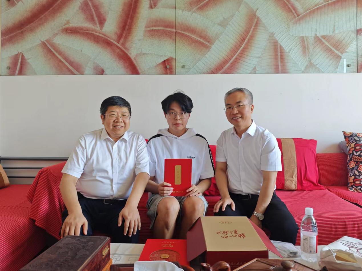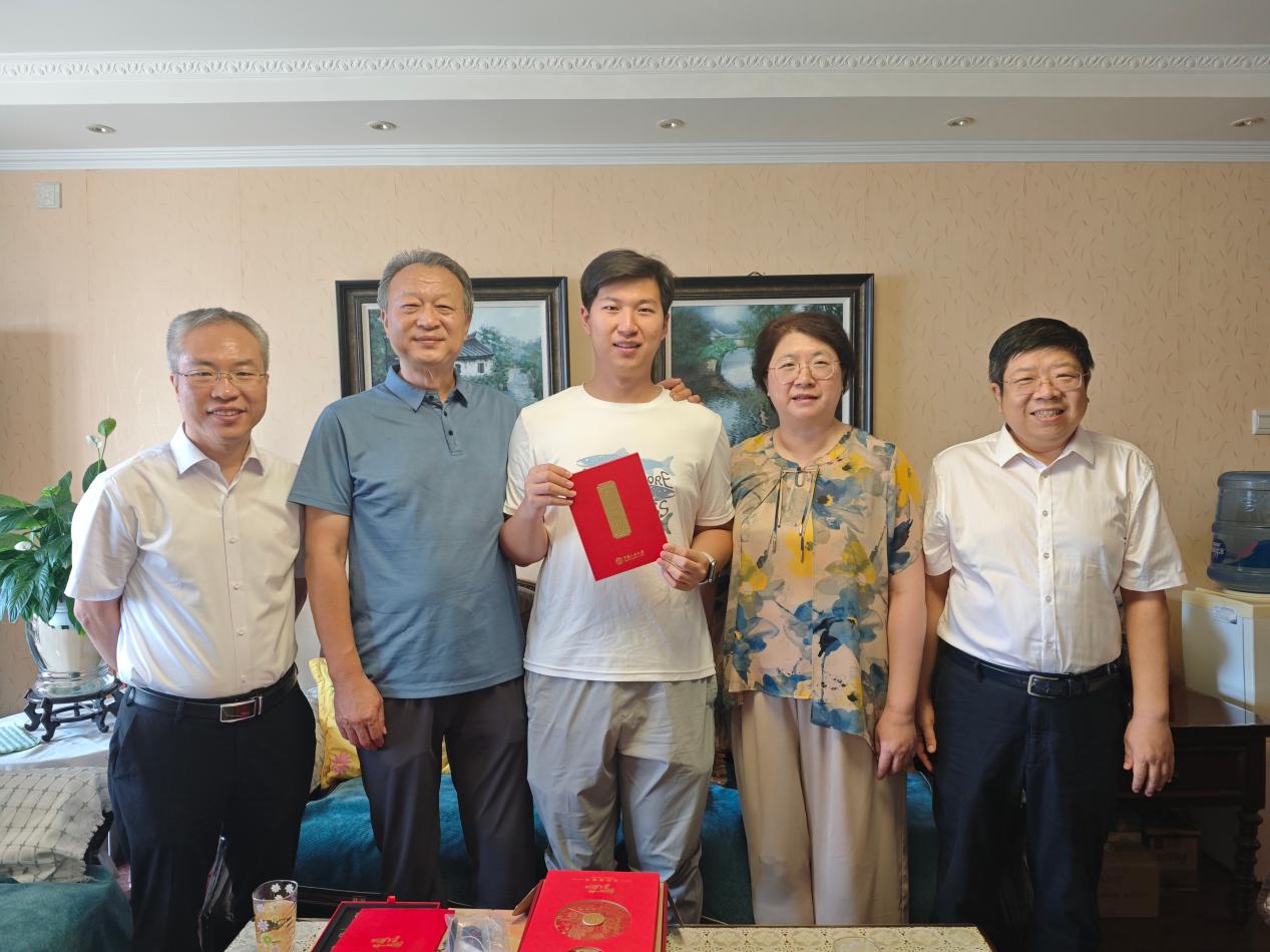 日期:2024-07-207月19日上午,自拍流出 院长臧峰宇、党委书记石德才将自拍流出 2024年第一封博士研究生录取通知书送到马克思主义哲学专业直博生郎英麒手中。