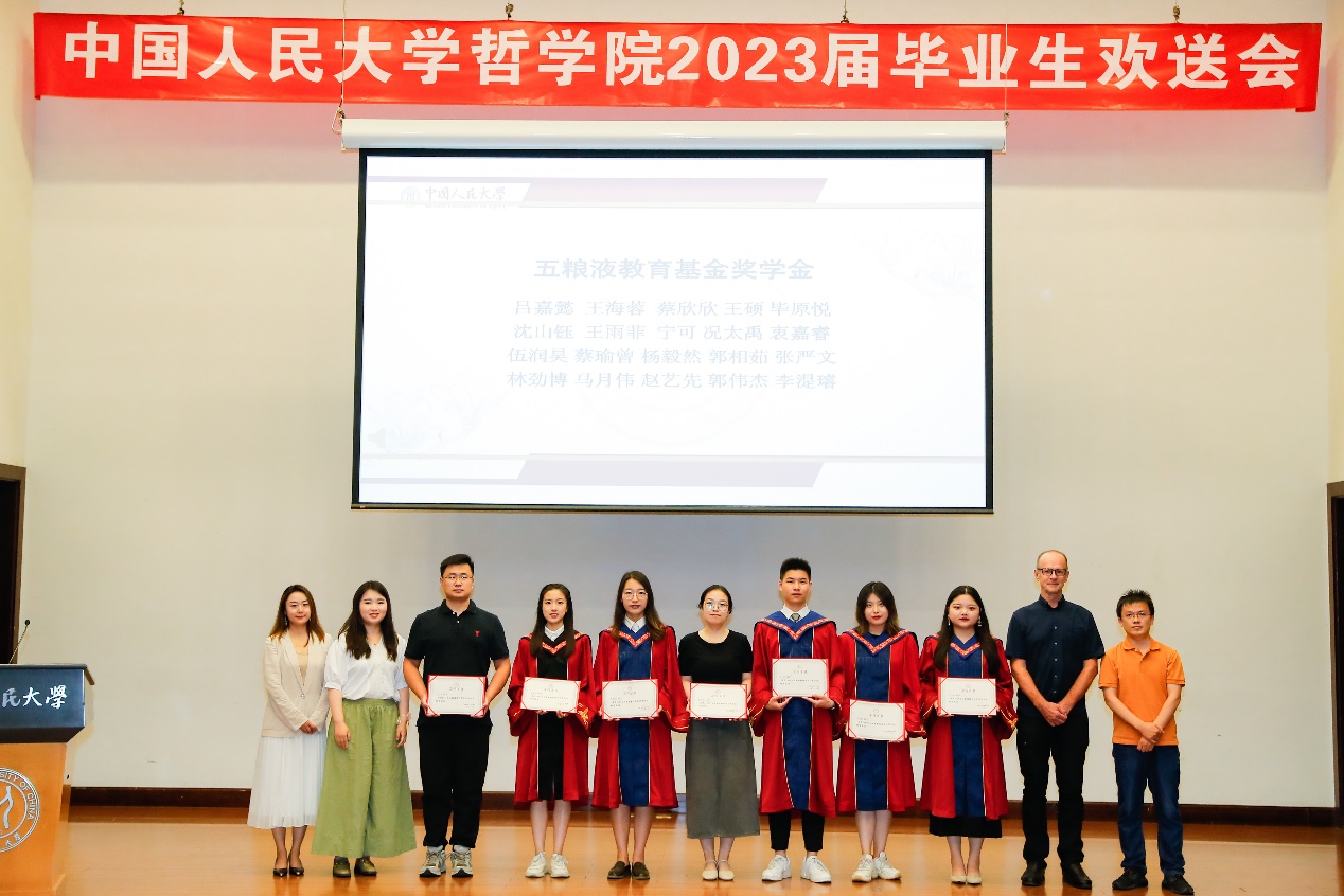 党委副书记肖晶介绍“五粮液奖学金”“第七届茶道哲学优秀学位论文”评定办法,并宣布获奖学生名单。薄国强教授、陈辉老师、孙晓雯老师为获奖学生颁奖。