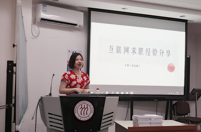 黄心成师姐即将就职于阿里巴巴集团。师姐主要讲了四部分内容,分别是求职前的自我分析与定位;求职必备的互联网利器;如何设计求职进度表与最后职业的选择。师姐强调,在选择一份工作之前要多加考虑,比如城市的发展、个人的兴趣、对于职业的心理定位等因素。在求职过程中要用心制作简历,尽量针对企业的要求来突出个人特点与实习经历。在最后进行选择时一定要审慎,考虑各个行业的优缺点并结合个人情况做出选择。