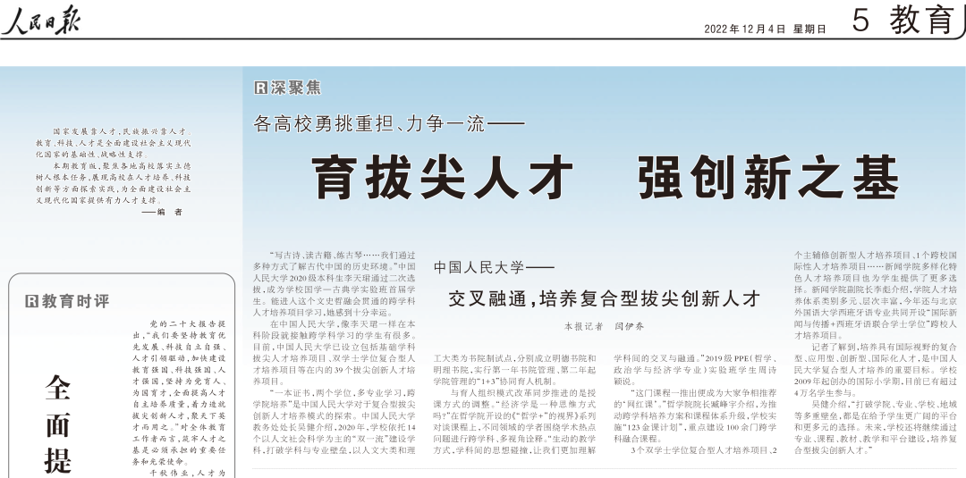 人民日报|自拍流出 :交叉融通,培养复合型拔尖创新人才