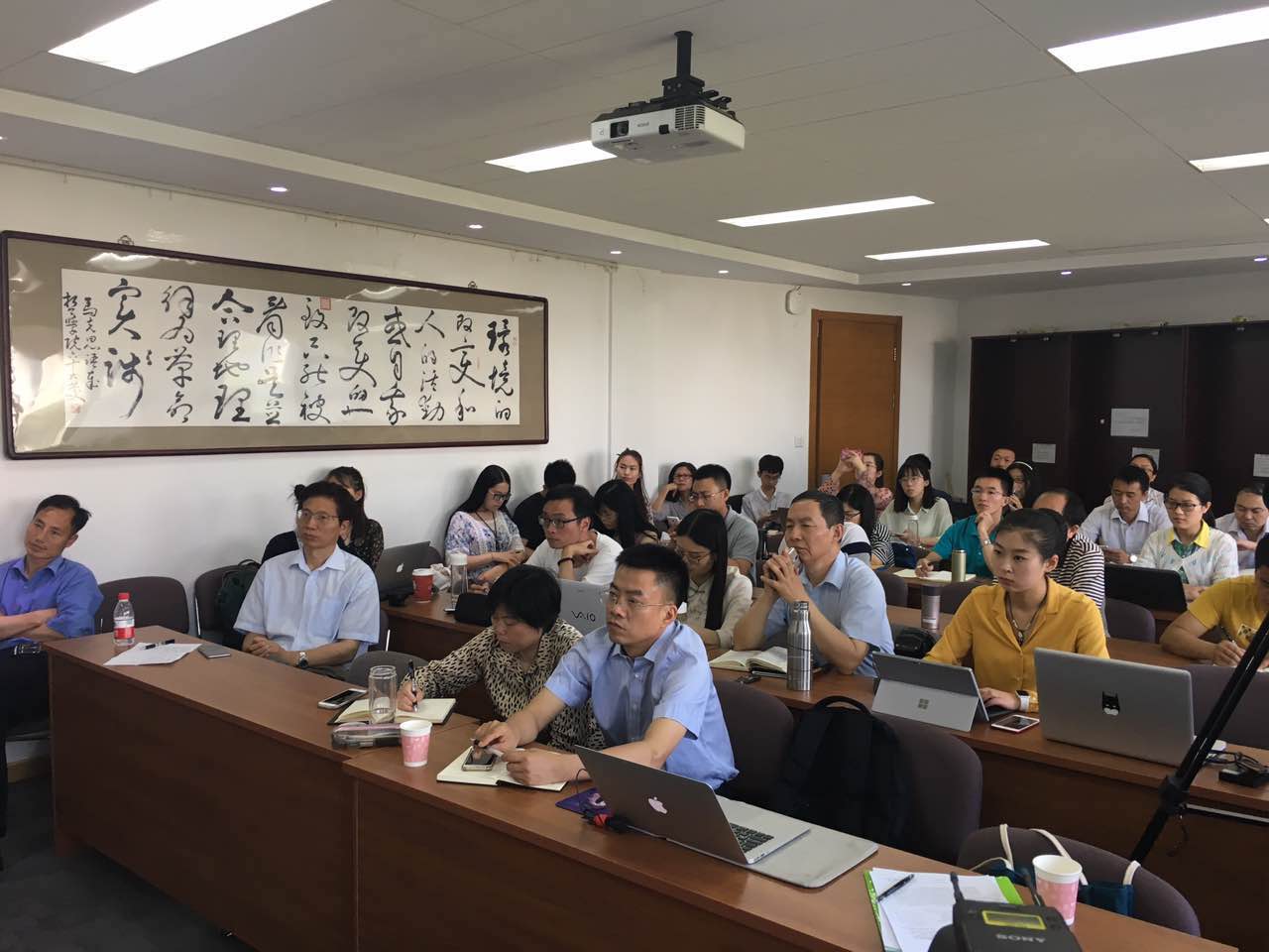 5月23日下午的第四场讲座,主题为“和谐与正义”(Harmony and Justice)。作为本次“儒学与当代中国”系列讲座的最后一讲,本次讲座邀请我校一级教授张立文先生作为嘉宾,并采取了别开生面的“讲座+对谈”的形式。首先由李晨阳教授进行为时一个半小时的讲座,分别阐述了和谐是什么(What is Harmony?)、怎么样和谐(How Harmony?)、东西方关于“和谐”的异同点等方面的问题。在此基础上,李教授继续深入地阐释了儒家思想中的和谐观(Harmony as a Confucian philosophy),以及和谐(Harmony)何以成为西方正义思想的基础。李教授的讲述兼述中外、博采古今,深入浅出地为到场师生阐明了“和谐与正义”的基本问题。接下来,由我校一级教授张立文先生进行为时一个小时的讲座。张立文先生简述了“和合学”的逻辑结构和主要内涵,对“和合学”探讨的五大冲突(人与自然、社会、人际、心灵、文明)、五大危机(生态、社会、道德、精神、价值)和五大原则(和生、和处、和立、和达、和爱)等进行了简要的梳理和阐发。张立文先生的讲述旁征博引、娓娓道来,在有限的时间内为大家上了一堂钩深致远的“和合哲学课”。最后张立文先生和李晨阳教授围绕“和”(Harmony)的相关问题展开了对谈,主要讨论了儒家思想的中和之道、和与西方思想的自由和正义的关系等问题。二者在对谈的同时与现场师生进行了小范围的互动,为提问的学者答疑解惑。关于“和”(Harmony)的问题,两位教授可以说是目前哲学界的两面旗帜,他们在本次讲座中阐述的“和谐与正义”的相关问题和研究,兼涉古今中外多个方面,为相关领域的研究者提供了一定的参考价值和借鉴意义。