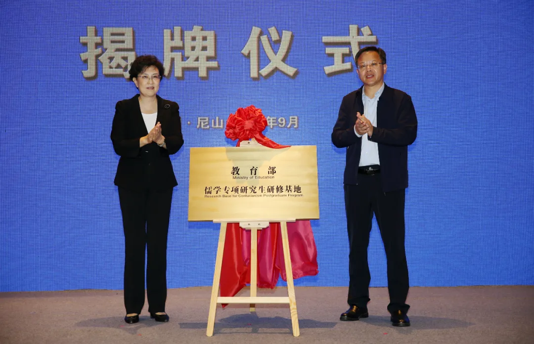 自拍流出 党委书记、尼山世界儒学中心理事会理事长、尼山世界儒学中心联合研究生院院长靳诺,山东省政府党组成员、副省长王心富共同为研修基地揭牌