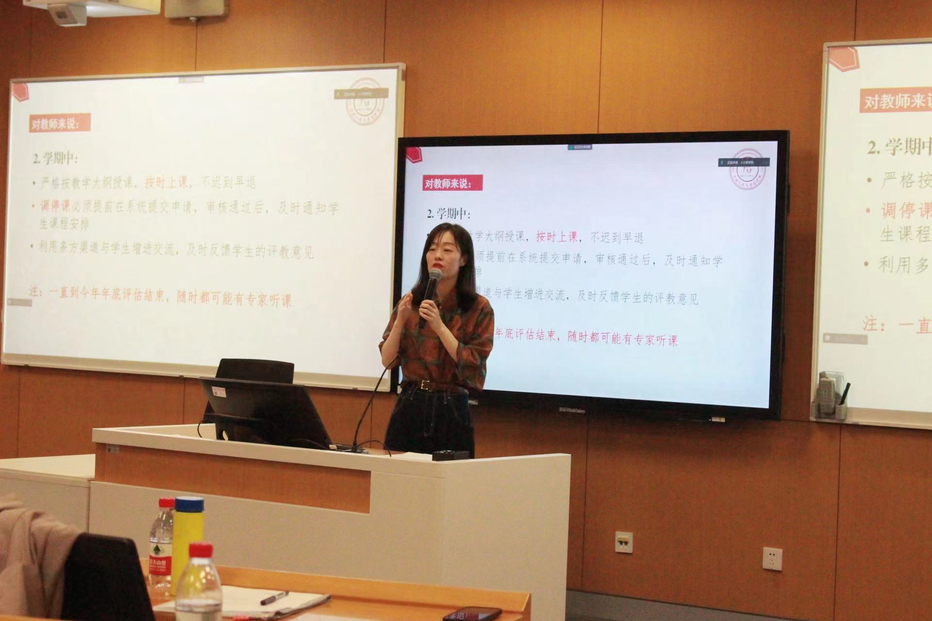 原理副院长向全体师生介绍了学院开展评估工作的重点,提出加强学院本科教育教学工作的着力点。就教师而言,要继续加强对课程设计、教学内容、教学方式、考试测评、论文指导等方面的重视,提高全过程教育教学质量;就学生而言,要认真完成课程修读、实践活动和毕业论文的各项要求。