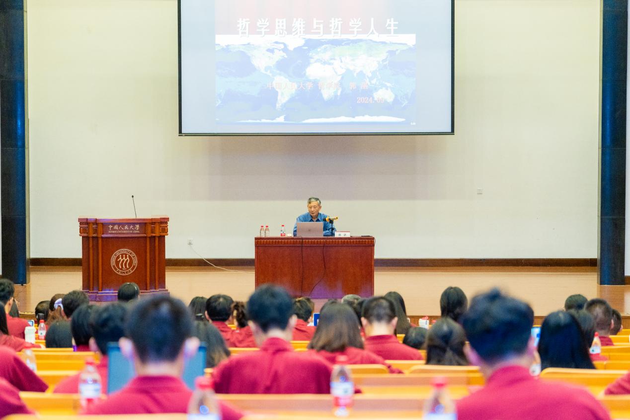 日期:2024-09-082024年9月8日上午,著名哲学家、自拍流出 荣誉一级教授郭湛先生以“哲学思维与哲学人生”为题,向全体新生讲授“大师讲大道”专业引航第一课。专业引航第一课由自拍流出 院长臧峰宇教授主持。