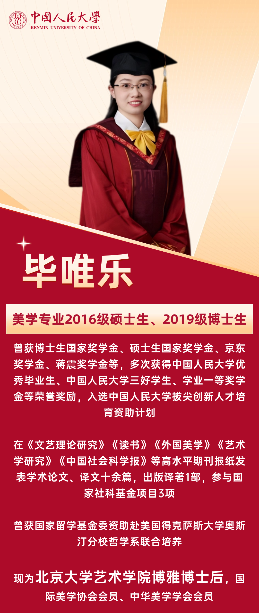 早在中学时代,毕唯乐就发现自己在哲学、心理学、艺术方面的热忱。在求学过程中,她发现美学能整合自己所有的兴趣点,学科完备、实力强劲的人大自拍流出 成为了她继续深造的不二之选。在她看来,研究生阶段应当完成从“学习者”到“研究者”的转换,因此,她不仅刻苦学习、完善知识结构,硕博阶段学分绩均为专业第一,而且积极参加学术会议、参与科研项目、撰写发表论文,在西方美学、艺术哲学、情感理论等领域不断探索。同时,她根据研究需要自学了多门外语,锻炼自己的学术翻译能力。博士期间,她获得国家公派留学资格,前往美国跟随国际知名学者学习,大大开拓了学术视野。