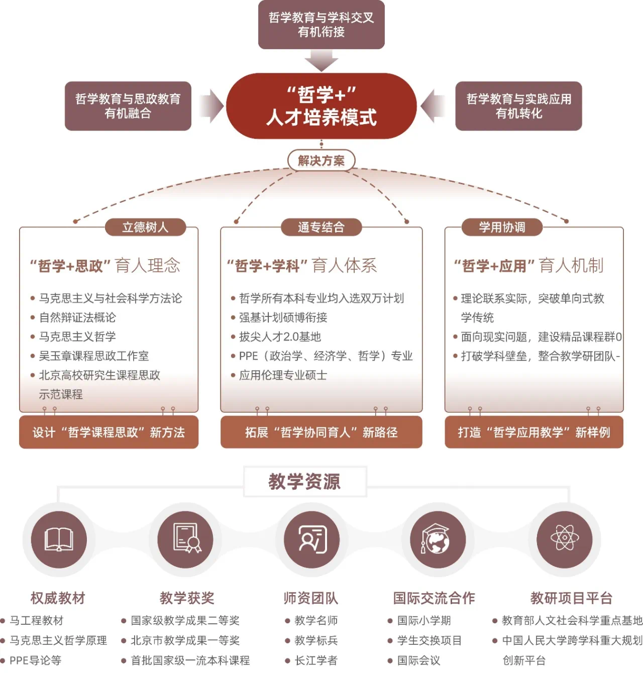 哲学是时代精神的精华与文化活的灵魂,是人文社会科学的基础,也是时代发展的先导。习近平总书记强调,“人类社会每一次重大跃进,人类文明每一次重大发展,都离不开哲学社会科学的知识变革和思想先导。”人大哲学以习近平新时代中国特色和社会主义思想为指导,发挥哲学学科的理论思维优势,贯彻新文科建设理念,以强基博识为导向,以立德树人为目标,契合国家重大战略需求,适应时代发展的深层需求,培养学生成为具有强烈时代使命感和责任感、扎实学识和卓越创新思维的杰出哲学人才。