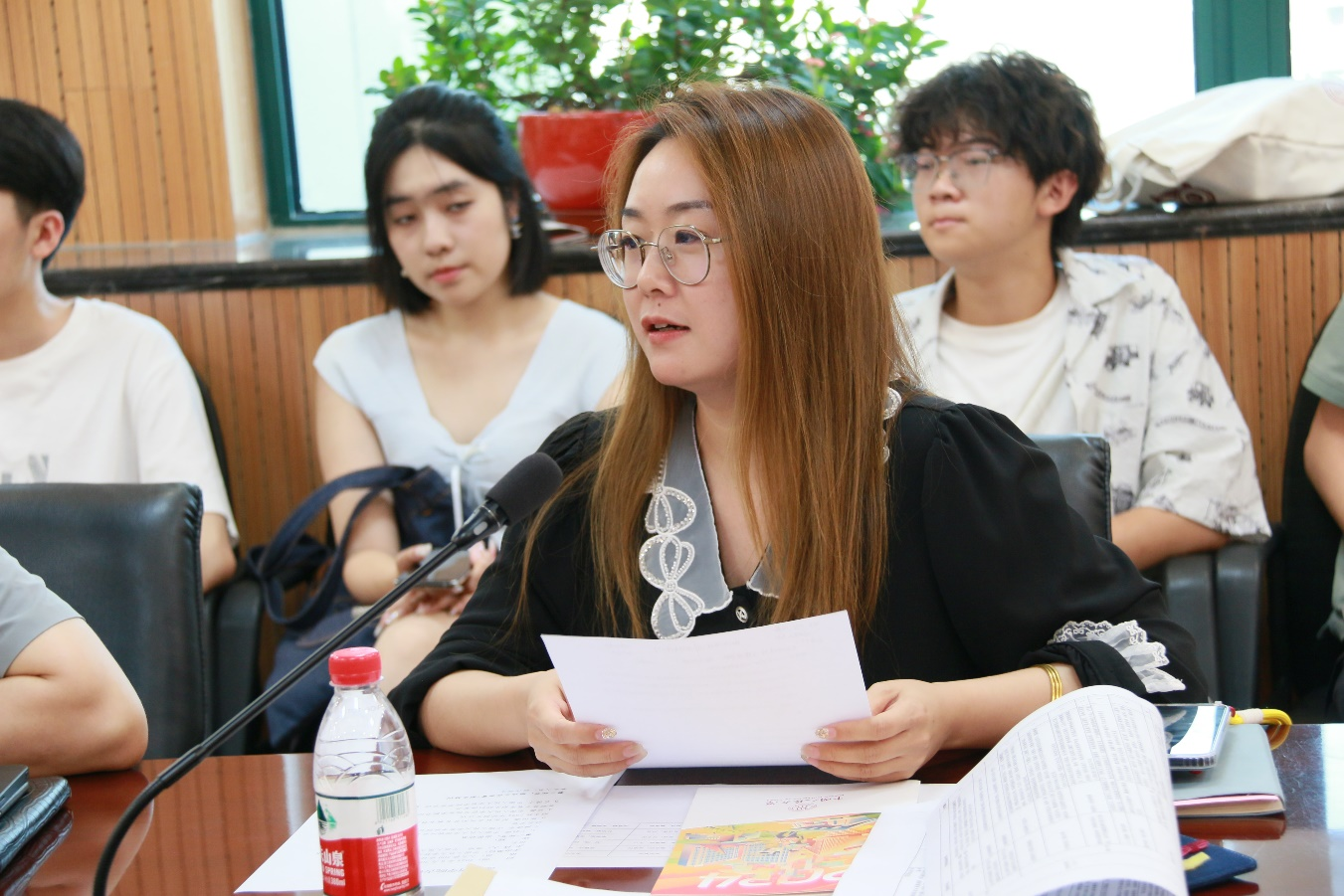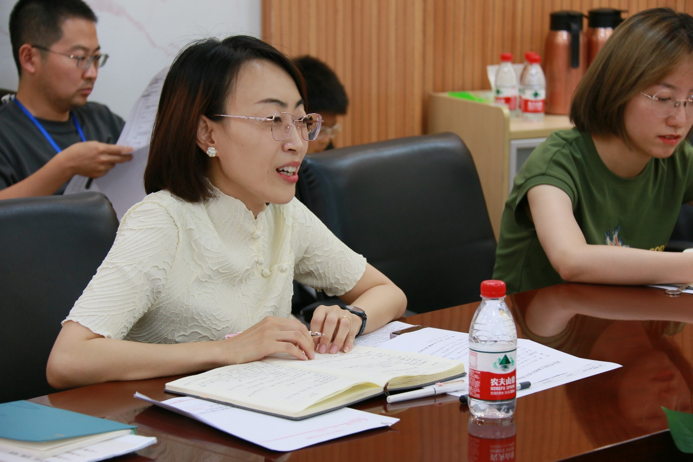 历史组负责人王俊淇、物理组负责人武岳、学生团负责人杜旭韬为招生组师生作行前培训。