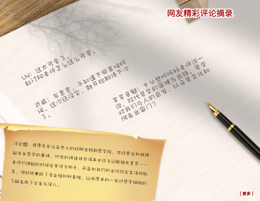首先,“观其德义”与经典诠释的问题,《周易》本为筮占之书,孔子却借其贯通天地人,并立足于人,下学上达,讲出宇宙人生的大道理,这是经典诠释史上的一个壮举。对周公思想的扬弃,对老子思想的超越,在当时可以说是一个思维方式的革命。其次,“下学上达”的宇宙论背景,指出中国哲学中的宇宙论目的不在于研究宇宙,而在于研究人在宇宙中的位置,孔子透过“观其德义”开显《周易》的解释空间与此有关。