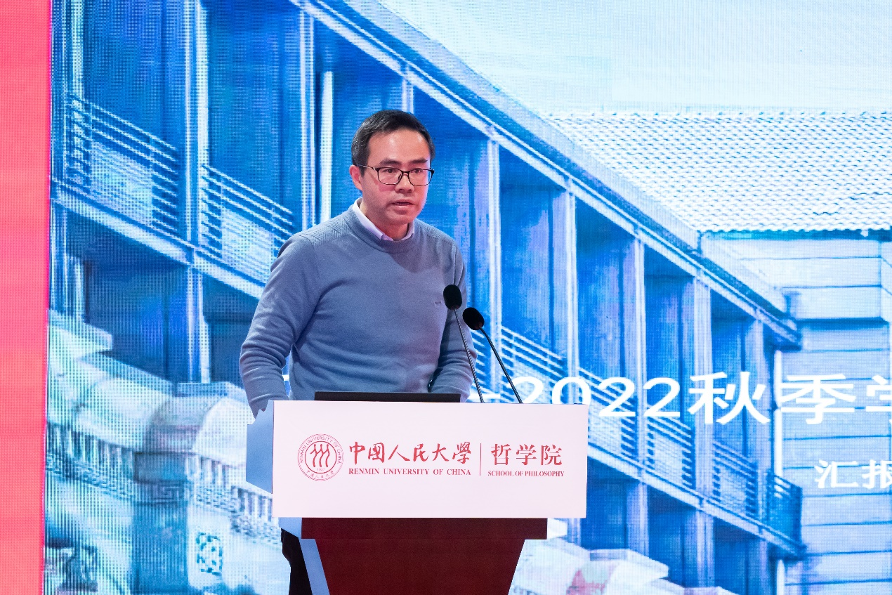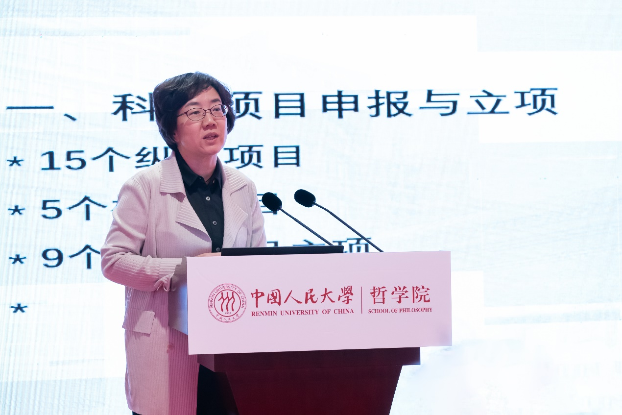 副院长刘劲杨汇报了学院本科教学工作,总结过去一年本科拔尖人才培养模式、专业建设、课程改革、教学获奖等多方面成绩,针对本科教学的现状与存在的问题提出下一步改进方案。副院长张霄汇报了学院研究生工作,强调落实研究生过程培养,加强精品课程建设,继续办好儒学专项计划,加强应用伦理专业硕士学位点建设,推动哲学研究生教育现代化。副院长王宇洁汇报了学院科研与国际交流工作,展示了学院过去一年在科研方面的进步,介绍了国际交流方面的拓展,指出今后将继续规范外事管理制度。党委副书记张鹏举汇报了学院党团学工作,指出学院将继续落实意识形态工作责任制,创新发展学生工作,加强对统战工作和群团工作的领导,调动全院师生的积极性。